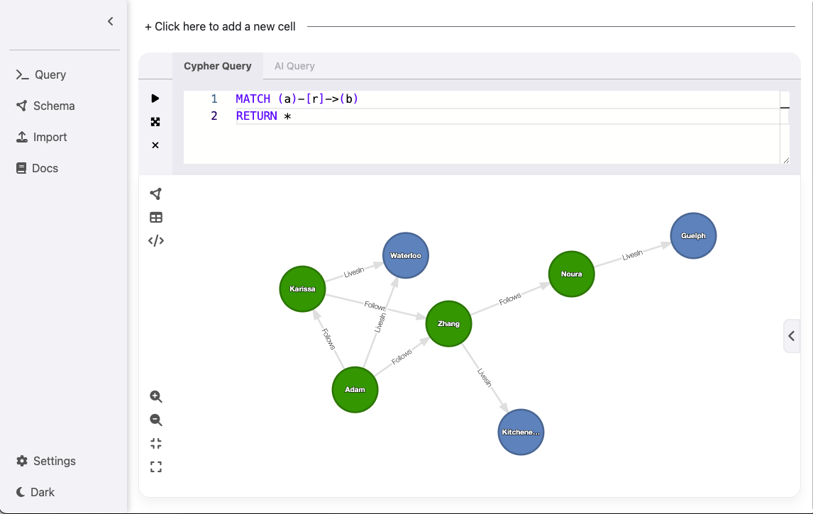 For simplicity, we’ll demonstrate how to run Cypher queries using Ladybug Explorer. You are welcome to run the same queries via the CLI or your preferred client language APIs.
